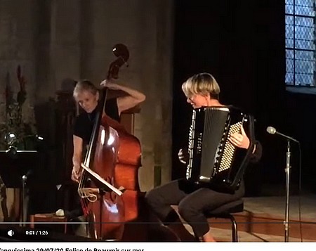 | Accordéon : Virginie Trognon titulaire d'un premier prix d'accordéon de concert. Elle est enseignante artistique au conservatoire des Sables d'Olonne et s’est produite dans divers ensembles musicaux comme Swazz Duo et Ils & Elles jazz quartet. | Contrebasse : Florence Calmel contrebassiste talentueuse, issue d'une famille de musiciens, a étudié le chant et la clarinette avant de se consacrer à la contrebasse. Elle est également membre du Cuarteto Azul, un groupe de tango originaire de La Rochelle et Oléron. | |